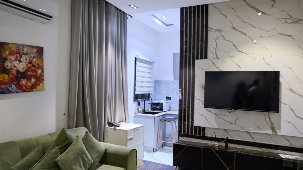 Welcome to our elegant One-Bedroom Apartment at Lisa Suites, where comfort meets sophistication. This thoughtfully designed space features a spacious bedroom, a cozy living area perfect for unwinding, a fully equipped kitchen for your culinary adventures, and a modern bathroom. Ideal for solo travelers or couples seeking a tranquil escape, our apartment offers a serene retreat in the heart of the city. Experience unparalleled hospitality and make your stay memorable with us!